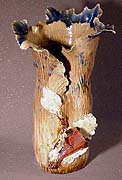 Mariposa artists Ann Mendershausen work creates art pottery using a wide range of techniques. She is constantly experimenting with traditional styles and modifying them as new ideas are born during the process. Ann's works include functional stoneware and porcelain, Raku and pit fired vases, mosaic constructions, and sculptural ceramics with topical and animistic themes. Ann teaches ceramics at Madera City college, and has shown widely in California and the Southwest. |