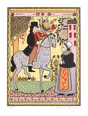 Louise August works in many media including serigraphy, woodblock printing, mural painting, and oils. She is an accomplished illustrator of children's books including "The Way Meat Loves Salt", "Milk and Honey", and "Why on this Night?". Her work is included in the collections of Yale University, Princeton University Museum of Fine Art, the Philadelphia Museum of Art, and many other prestigious organizations. Her images are complex and full of whimsical details that add charm and interest to the work. August often uses a controlled palette and dark outlines to enhance the emotive qualities of an image. Overall, her work combines charm, humor, and sensitivity to create images that speak to us all on an intuitive and emotional level. |